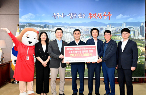 재단법인 유성문화재단(이사장 류성열)이 10일 오후 2시 30분 중구청 구청장실을 찾아 울산사회복지공동모금회를 통해 저소득 가정 대학생을 위한 장학금 2,000만원을 전달했다. 이번 전달식에는 김영길 중구청장과 류해렬, 류동수 재단법인 유성문화재단 이사, 양호영 울산사회복지공동모금회 사무처장 등 6명이 참석했다. 해당 장학금은 지역 내 저소득 가정 자녀 가운데 학업 성적이 우수한 대학생 20명에게 각 100만원씩 전달될 예정이다. 한편 재단법인 유성문화재단은 지난 1986년 서울에서 설립된 비영리 재단으로 2022년 7월 울산으로 이전했다. 재단법인 유성문화재단은 인재 양성을 위한 장학사업과 지역 문화 창달을 위한 문화사업 등 지속적인 사회공헌활동을 펼치고 있다. 류성열 재단법인 유성문화재단 이사장은 "어려운 환경에서도 학업에 매진하고 있는 대학생들에게 힘이 되길 바란다"며 "앞으로도 책임과 나눔 정신으로 다양한 사회공헌활동에 앞장서겠다"고 밝혔다. 김영길 중구청장은 "따뜻한 마음으로 지역 인재 양성에 힘을 보태주셔서 감사드린다"며 "소중한 뜻에 따라 도움이 필요한 학생들에게 장학금을 잘 전달하겠다"고 밝혔다. 김수빈기자 gpfk2202@